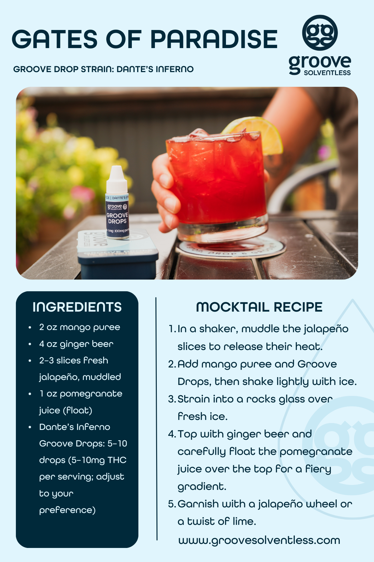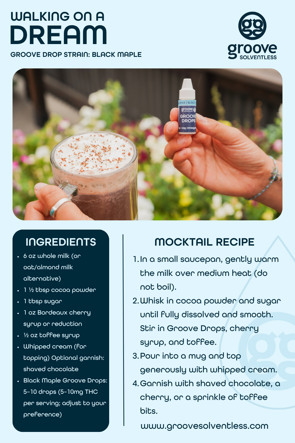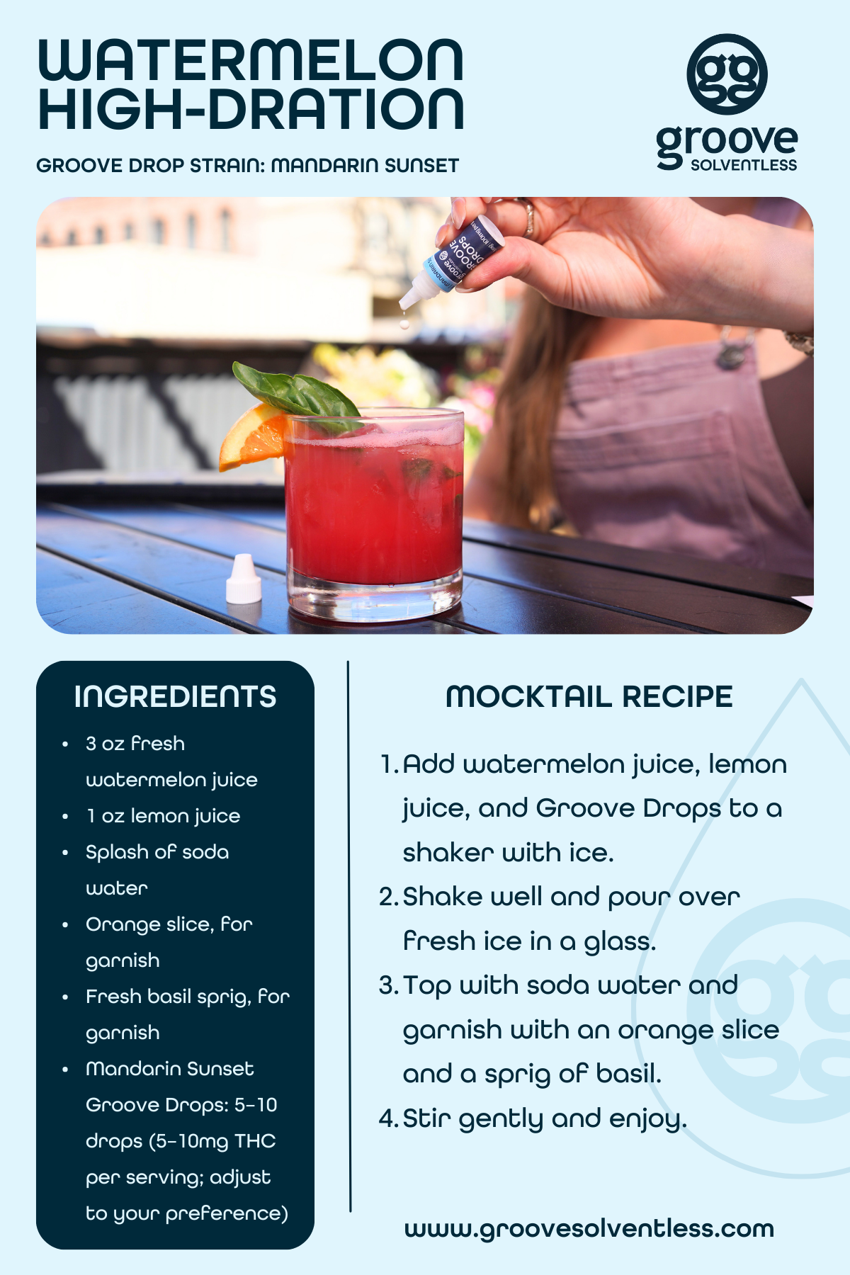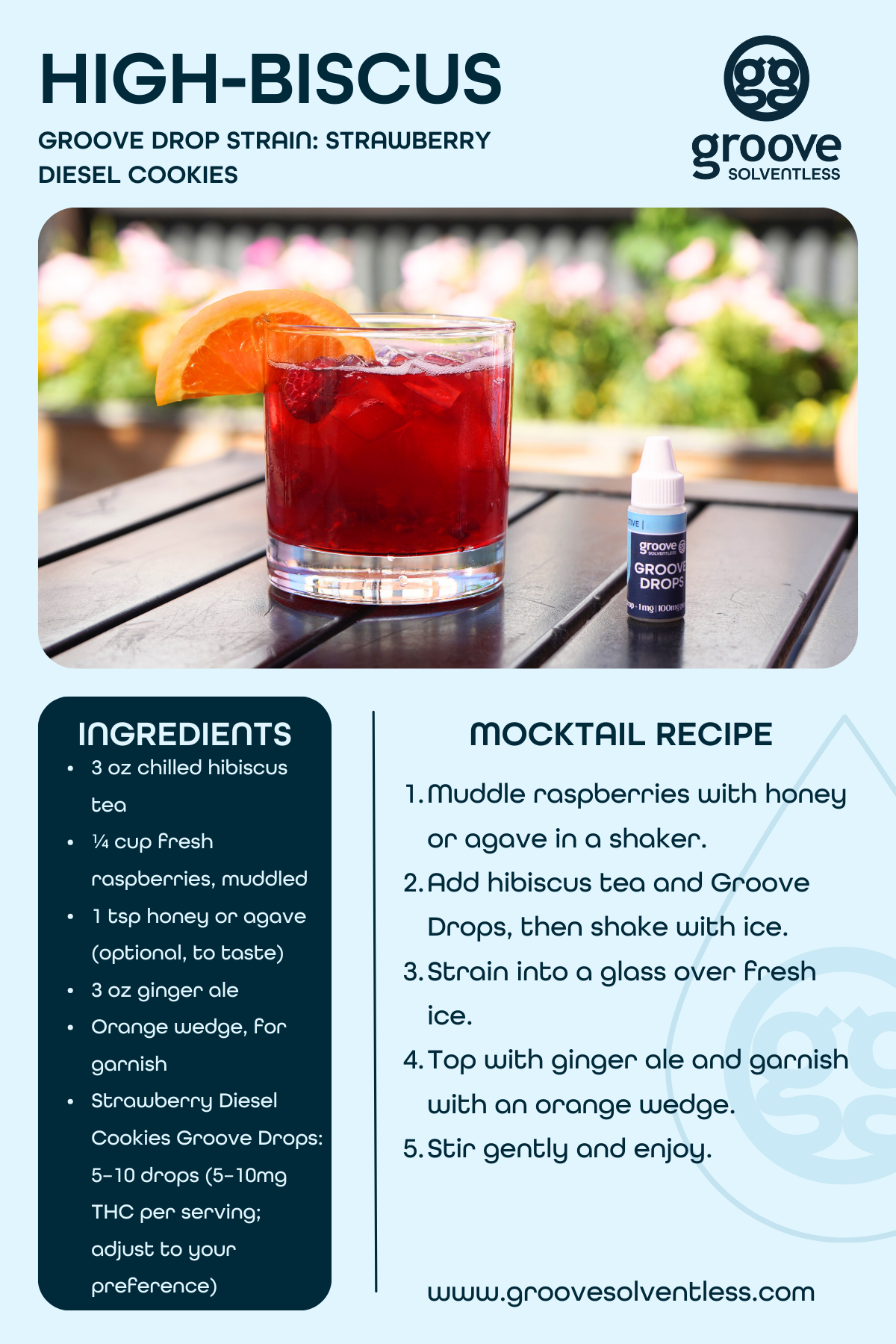 We’ve carefully crafted mocktail recipes to pair with each strain, highlighting and complementing the natural terpene flavors of Groove Drops. Whether you’re looking for a refreshing beverage to share with friends or a flavorful drink to enjoy on a laid-back night in, our mocktails make it easy to create something delicious at home.
